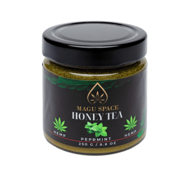 Magu Space medaus arbata su pipirmėtėmis ir kanapėmis kupina pipirmėtės gaivos, medaus saldumo ir kanapių žiedų teikiamos ramumos.